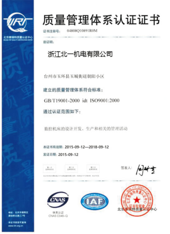 質量管理體(tǐ)係認證證書